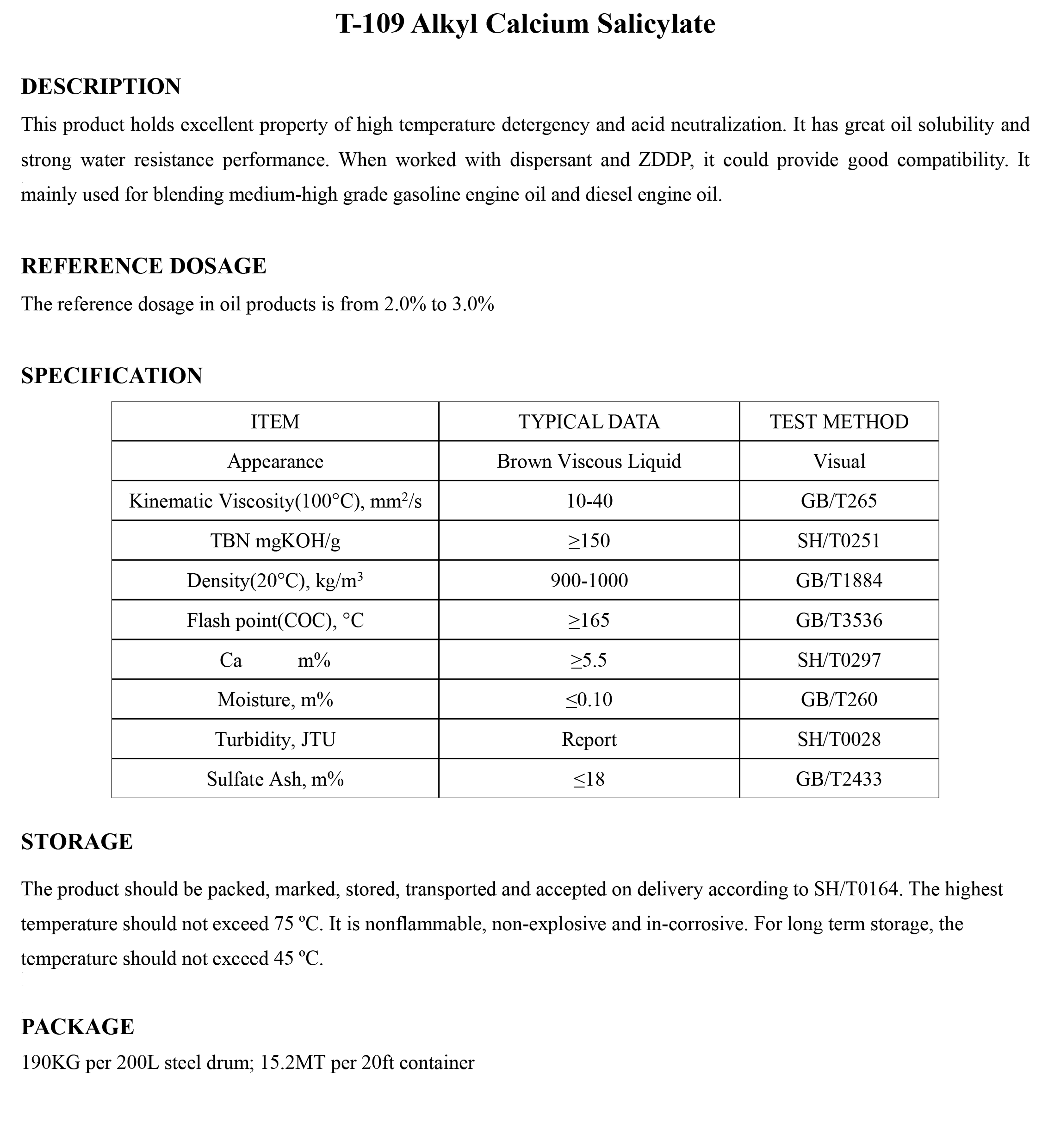 T-109 Alkyl Calcium Salicylate-Detergents-錦州新興石油添加劑有限責任公司