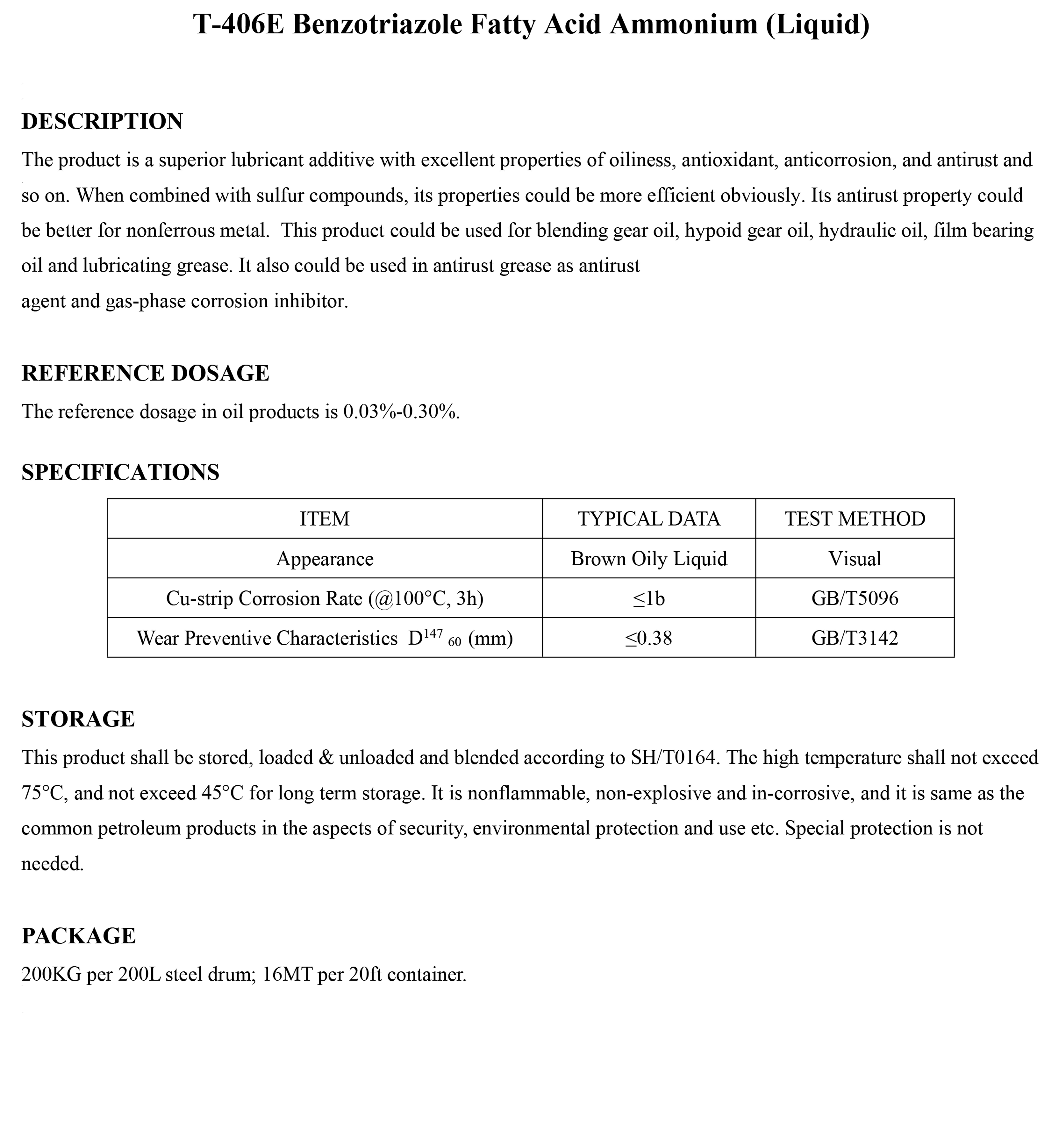 T-406E Benzotriazole Fatty Acid Ammonium (Liquid)-Oily Additive-錦州新興石油添加劑有限責(zé)任公司