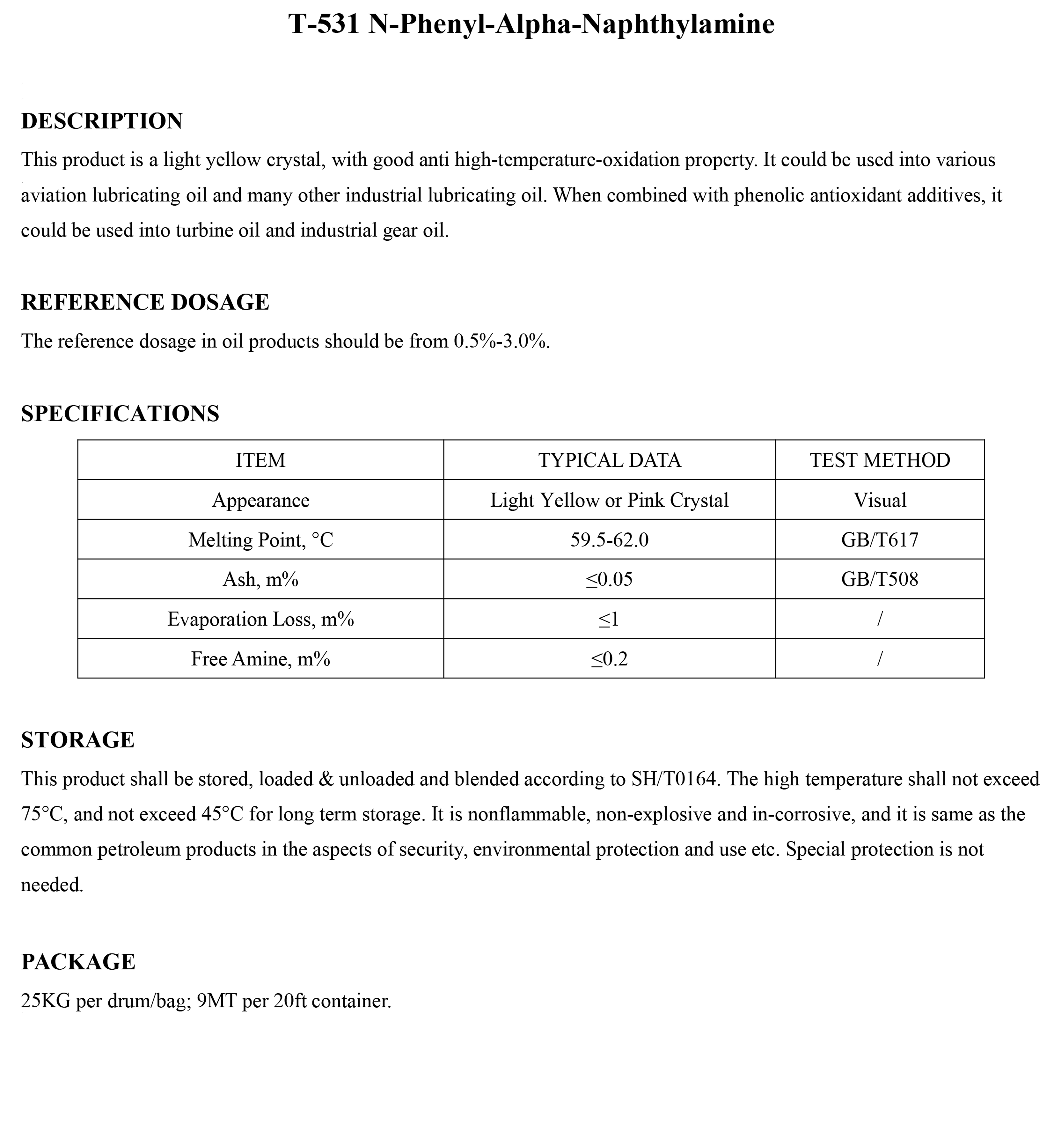 T-531 N-Phenyl-Alpha-Naphthylamine-Antioxidant and Antiglue Additive-錦州新興石油添加劑有限責(zé)任公司