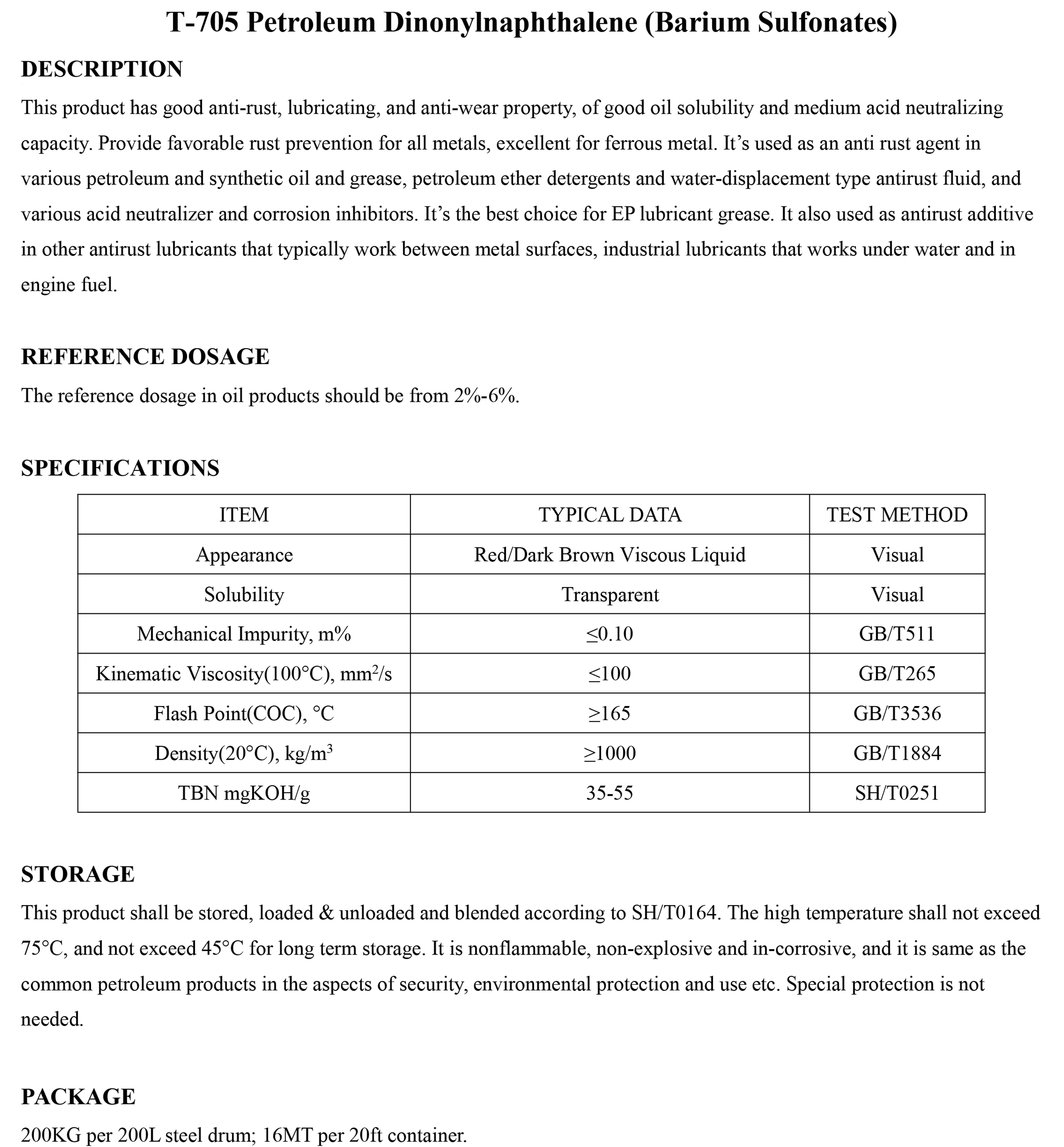 T-705 Petroleum Dinonylnaphthalene (Barium Sulfonates)-Antirust Additive-錦州新興石油添加劑有限責(zé)任公司