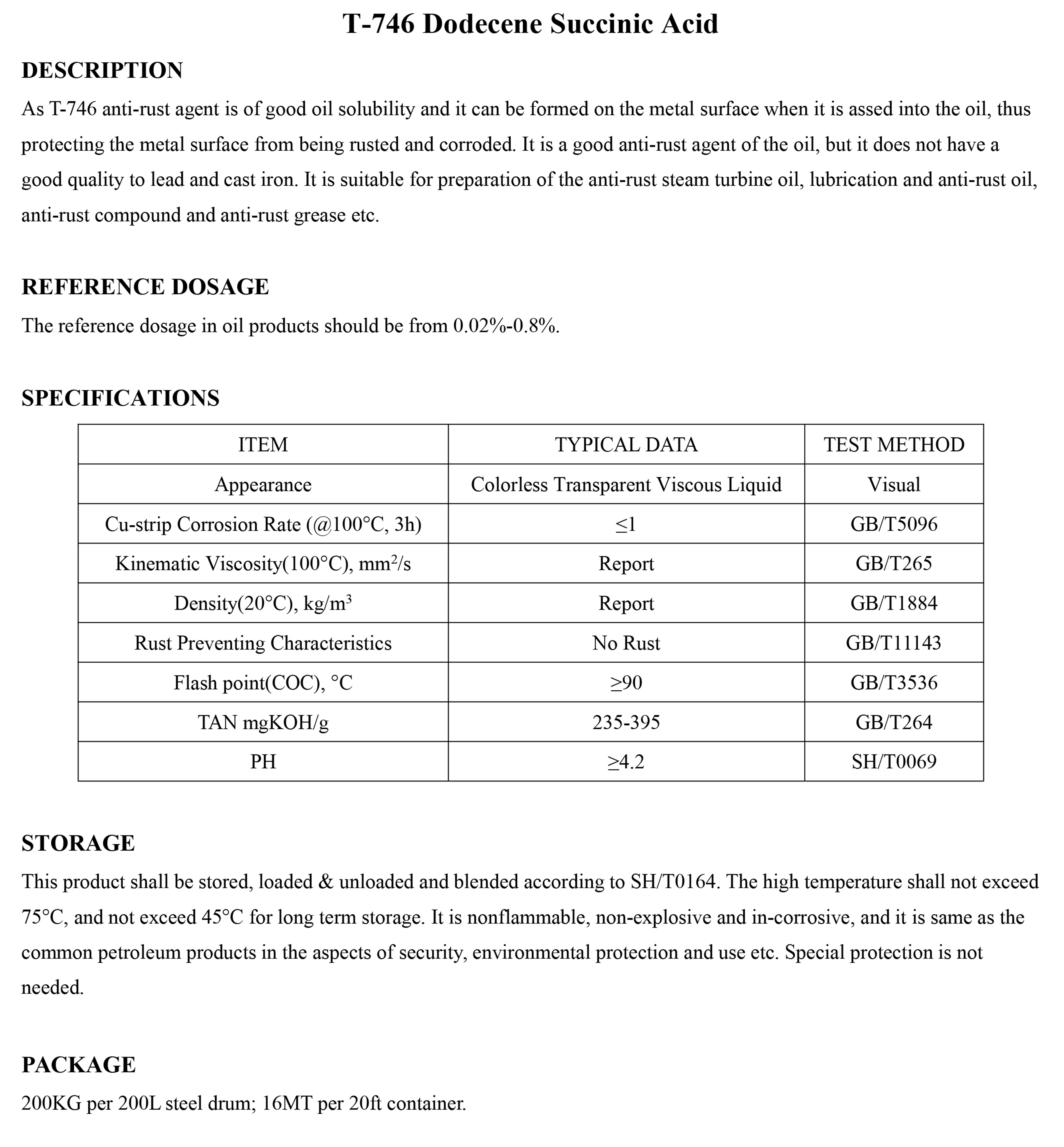 T-746 Dodecene Succinic Acid-Antirust Additive-錦州新興石油添加劑有限責任公司