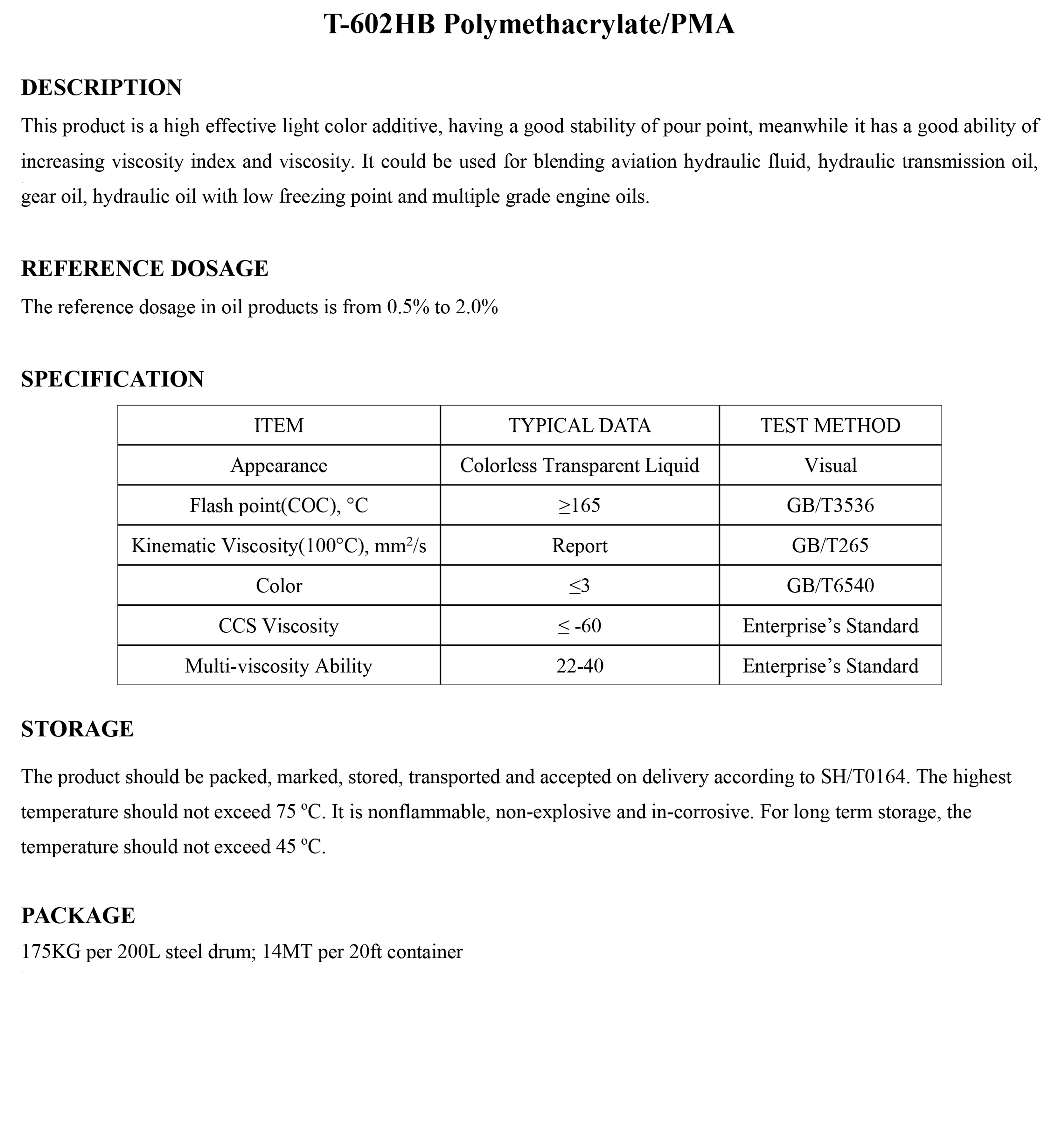 T-602HB Polymethacrylate/PMA-PPD-錦州新興石油添加劑有限責(zé)任公司
