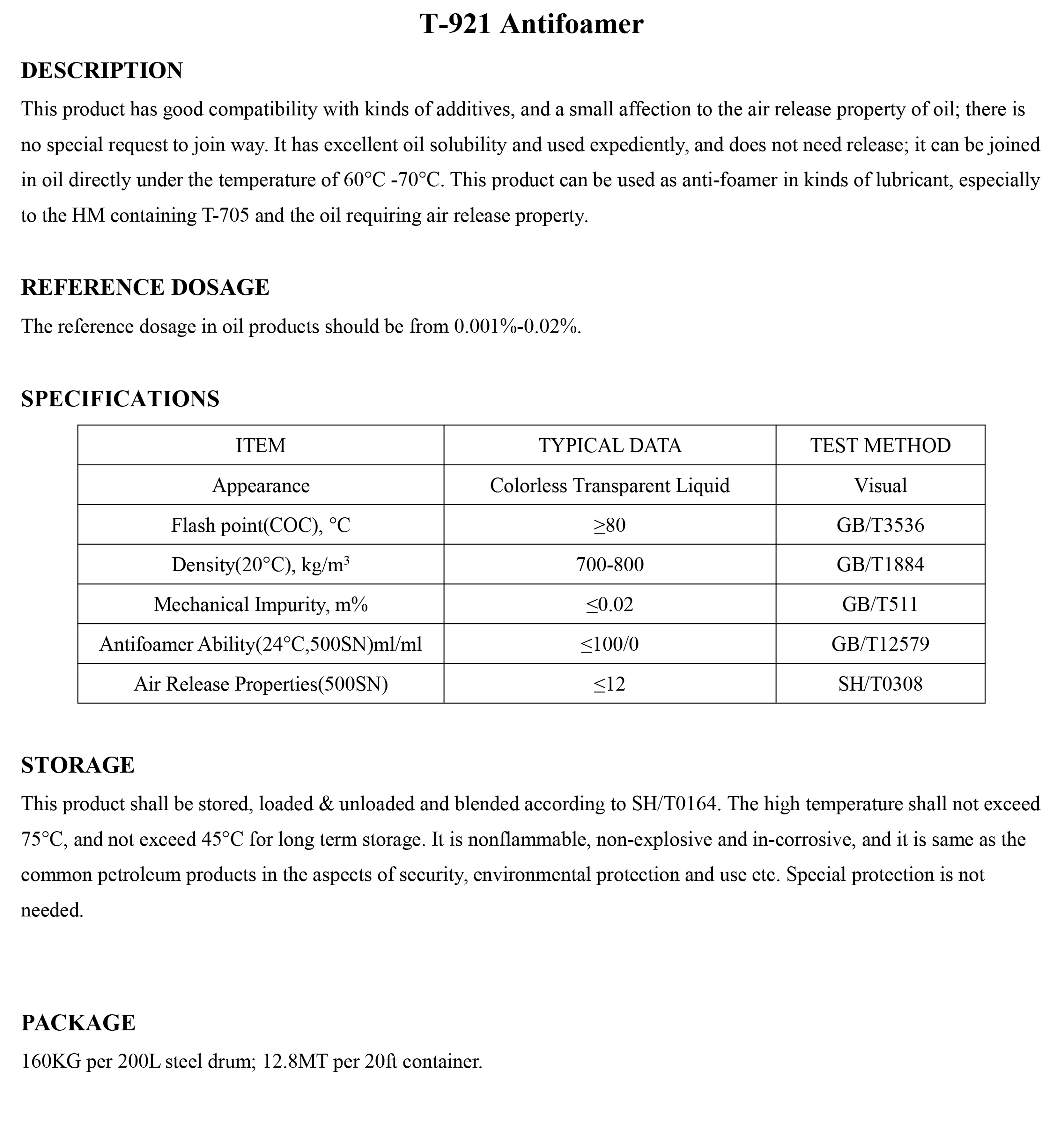 T-921 Antifoamer-Antifoamer-錦州新興石油添加劑有限責(zé)任公司
