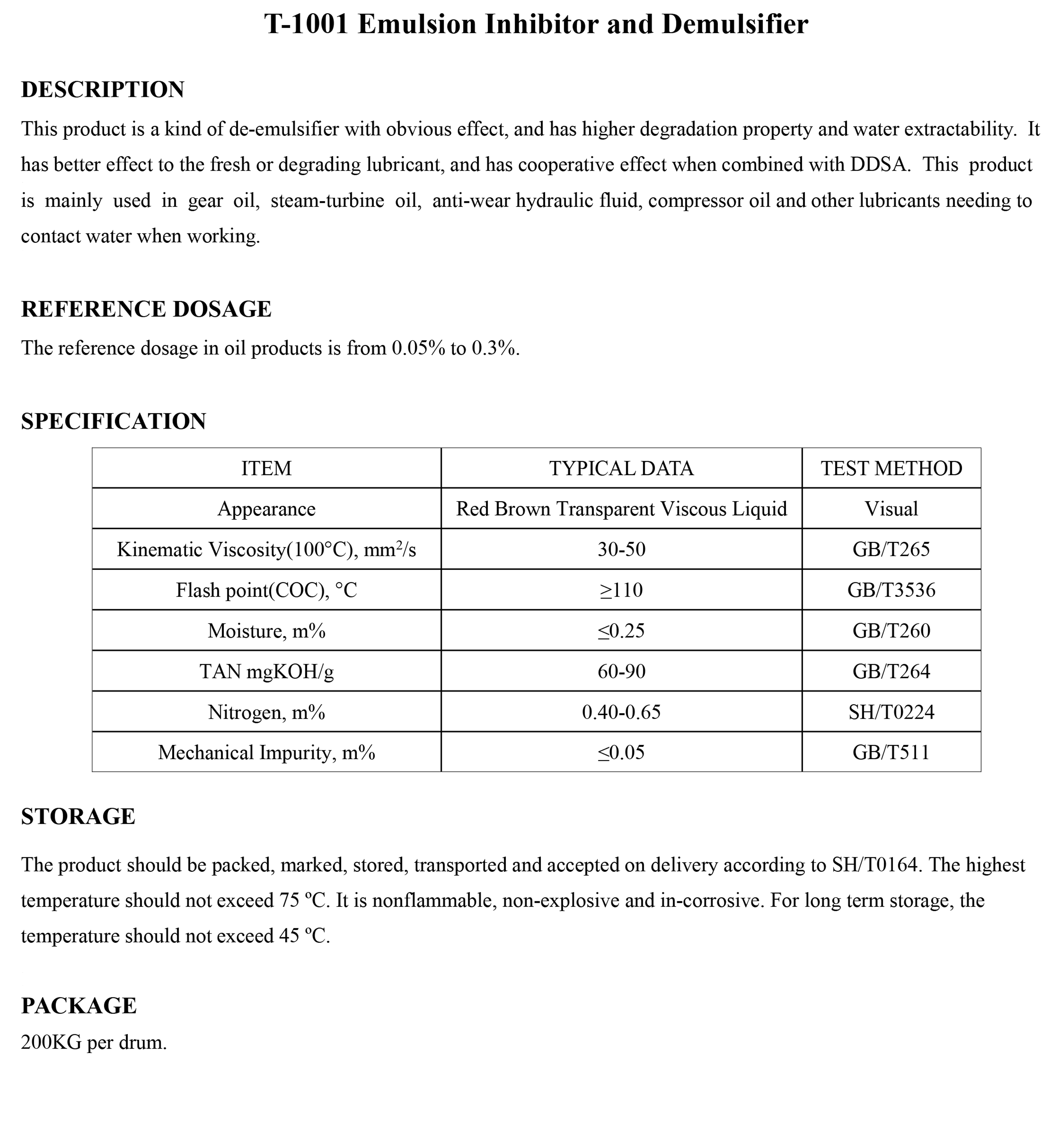 T-1001 Emulsion Inhibitor and Demulsifier-Demulsifier-錦州新興石油添加劑有限責任公司