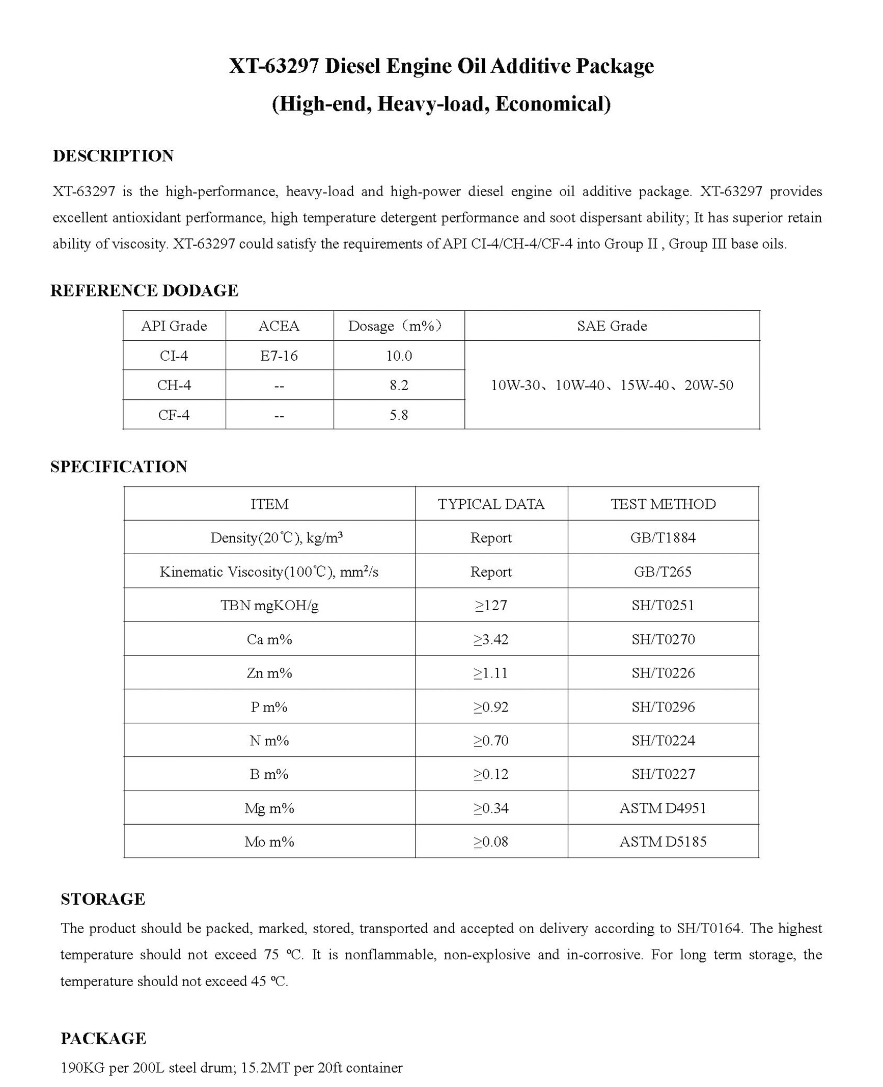 XT-63297 Diesel Engine Oil Additive Package(High-end, Heavy-load, Economical)-Engine Oil Additive Package-錦州新興石油添加劑有限責(zé)任公司