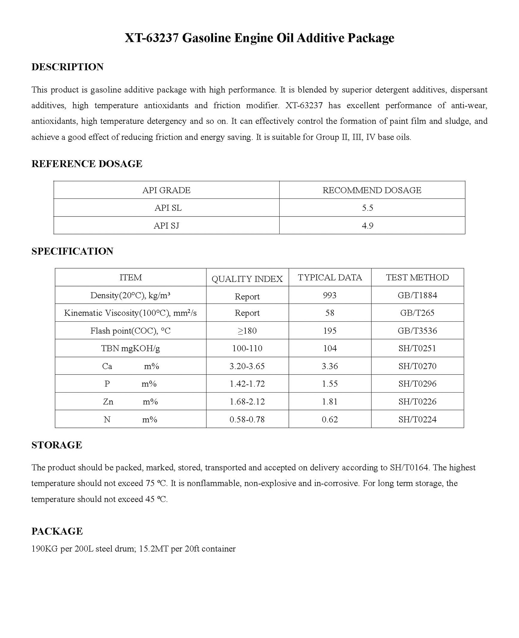 XT-63237 Gasoline Engine Oil Additive Package-Engine Oil Additive Package-錦州新興石油添加劑有限責(zé)任公司